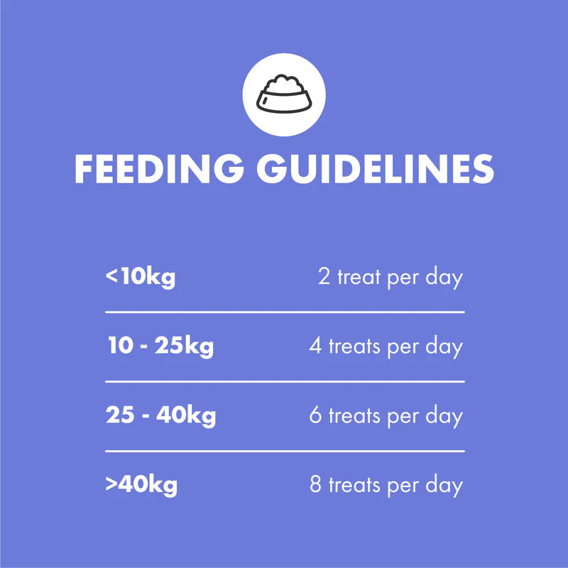 Dank des Kollagenzusatzes unterstützen die Mini-Knochen zudem Gelenke, Haut und Fell. Sie eignen sich daher ideal für ältere Hunde oder Hunde, die in stressigen Zeiten zusätzliche Unterstützung benötigen. Dank ihrer kompakten Größe eignen sie sich hervorragend als tägliche Zwischenmahlzeit oder Belohnung.