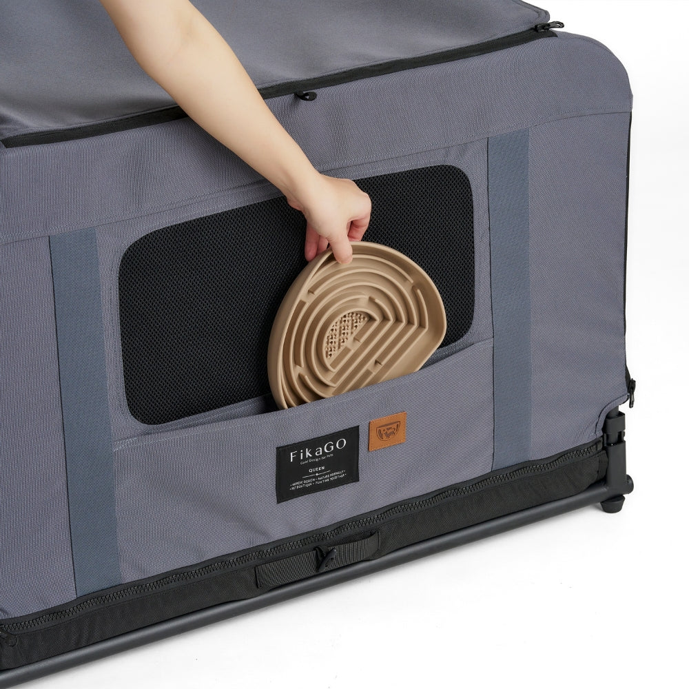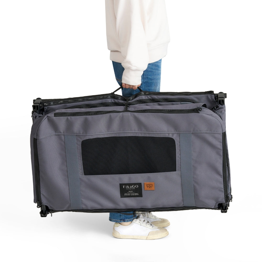 The FikaGo Queen Soft Kennel is a versatile, foldable transport solution for dogs and cats, designed for use at home, on the go, or in conjunction with the FikaGo King (push cart). This kennel offers a spacious, safe, and comfortable resting area for pets, with thoughtful details such as a water-repellent exterior, breathable mesh panels, and a removable mat with a washable cover.