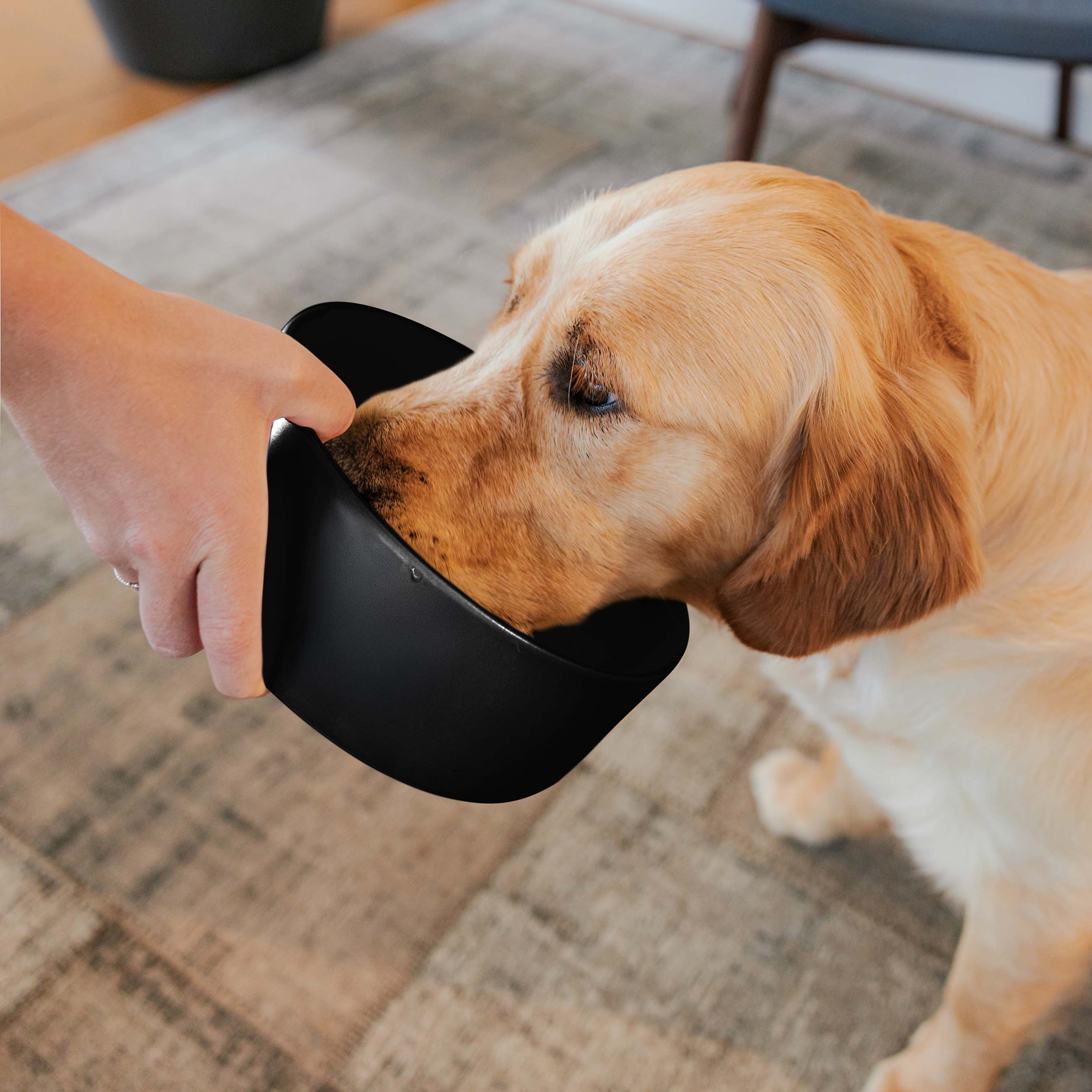 Let op: om beschadiging van de vloer te voorkomen, altijd de onderzijde van de voerbak droogmaken voordat deze op de vloer wordt geplaatst. Voor extra bescherming is de SERVE placemat aanbevolen.