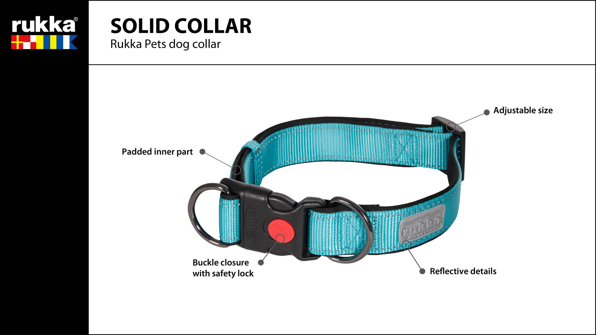 Maak de Rukka Solid collectie compleet met het harnas, de halsband en bijpassende riem. De Solid collectie is verkrijgbaar in de kleuren turquoise of zwart.