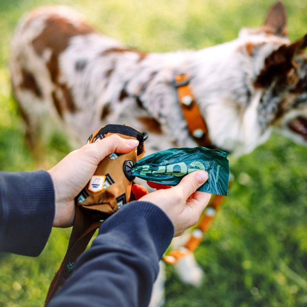 De poepzakhouder is vervaardigd uit 100% gerecycled polyester (RPET), afkomstig van gerecyclede PET-flessen. Dankzij de lichtgewicht clip kan de houder eenvoudig worden bevestigd aan riem, tas of kleding. Klittenband aan de achterzijde zorgt voor extra stabiliteit bij bevestiging aan een hondenriem en voorkomt ongewenst bewegen. De trekkoordsluiting houdt de poepzakjes veilig op hun plaats, ook tijdens actieve wandelingen.